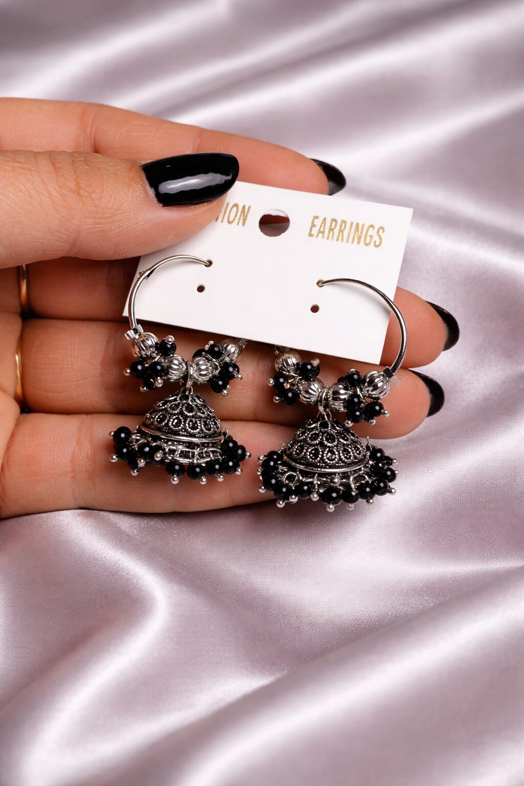Black Beaded Royal Jhumki Hoops – A Perfect Blend of Tradition & Style