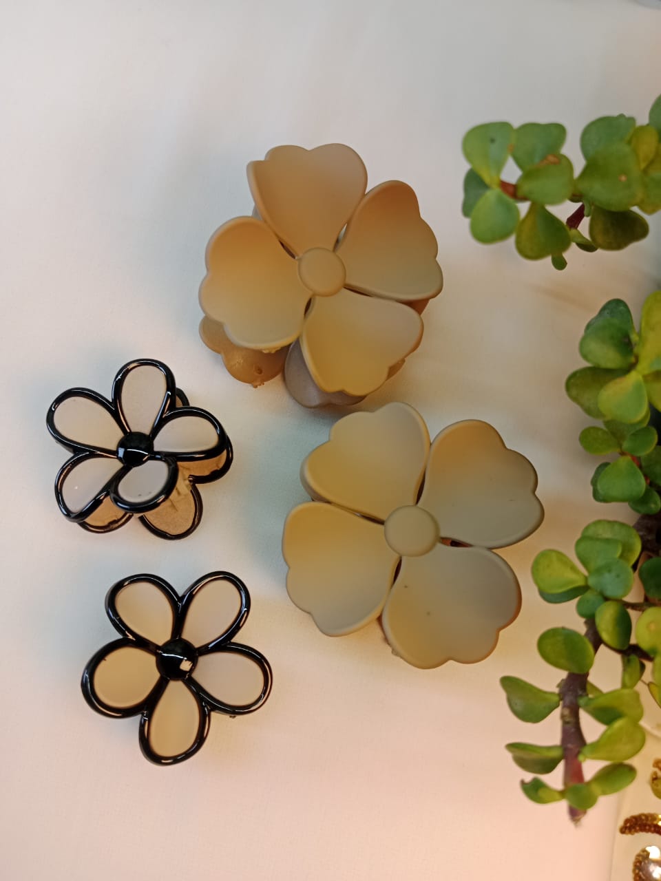 The small black-and-brown combination claws introduce contrast and creativity to the set. Their dual-tone design blends the warmth of brown with the boldness of black, creating a striking yet balanced aesthetic. Compact and lightweight, they’re perfect for side twists, layered hairstyles, or adding accent details to your look.