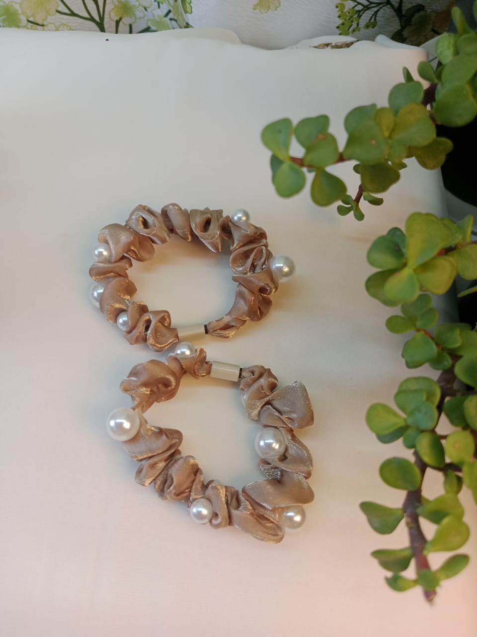 Completing the hamper, the soft brown scrunches bring comfort and charm. Made from smooth, stretchable fabric, they protect your hair from breakage while adding a touch of softness to your overall look. Their warm brown hue ties the entire collection together, making every piece feel part of a coordinated and refined ensemble.
