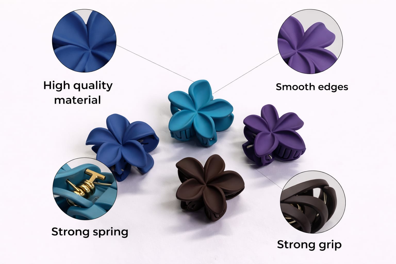 We craft the Matte Claw Clips using high-quality durable material to ensure long-lasting performance. The strong metal spring provides a secure grip, holding your hair firmly in place without slipping or causing discomfort.