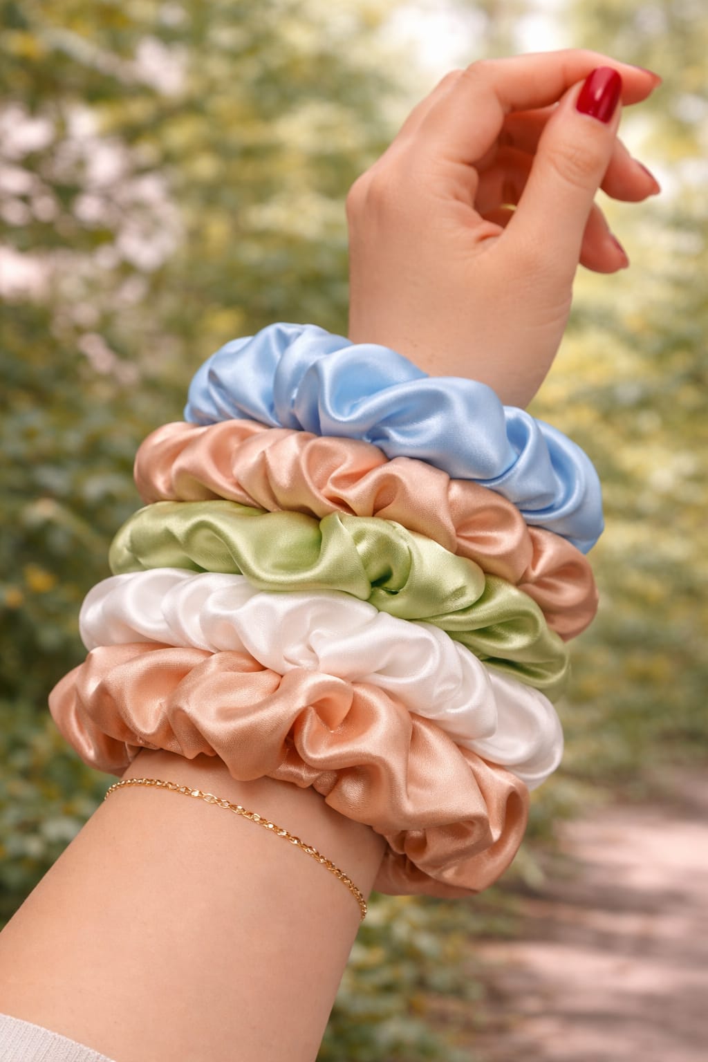 Add a luxurious touch to your hair accessories collection with these soft, durable, and stylish satin scrunchies—where comfort meets timeless beauty.