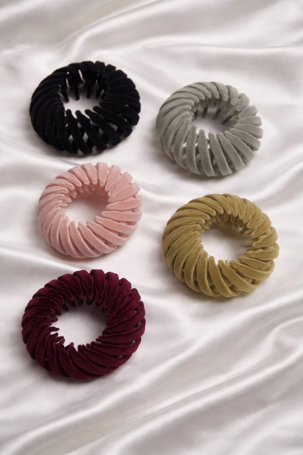 Add a luxurious touch to your hairstyle with our Velvet Spiral Hair Claw Clip (Set of 3), designed for both comfort and style. This unique circular claw clip features a soft velvet finish combined with a spiral structure that gives your hair a voluminous and elegant look.